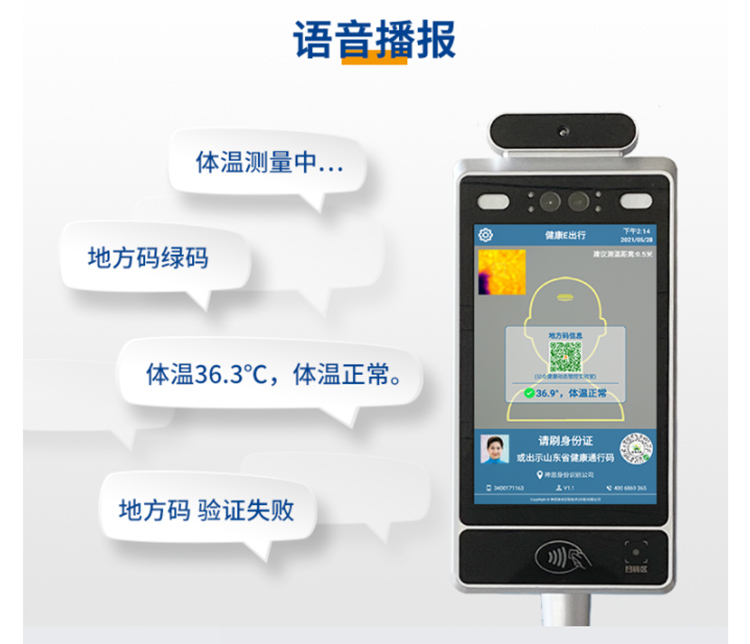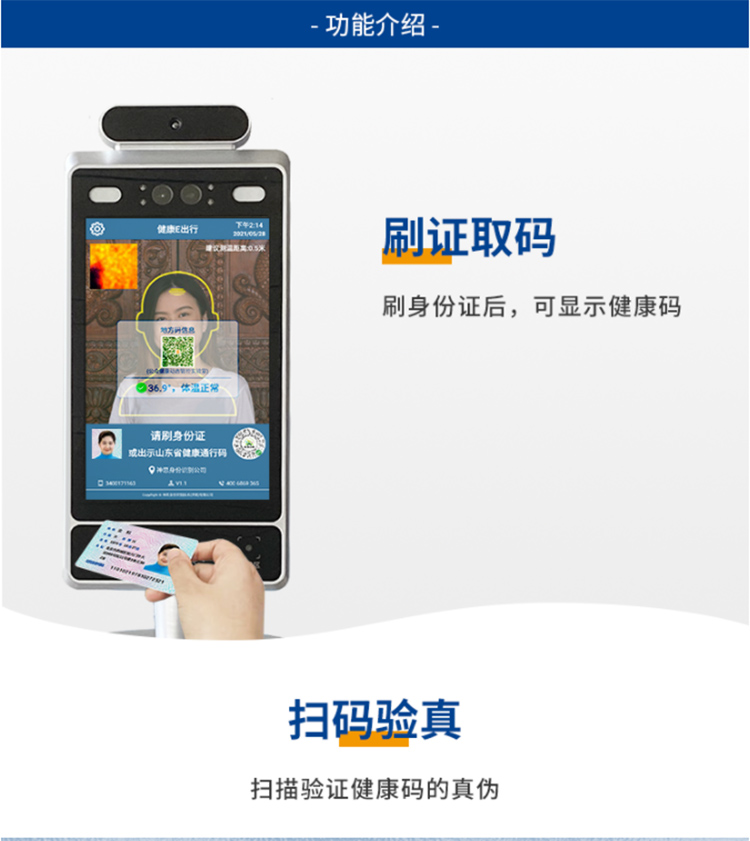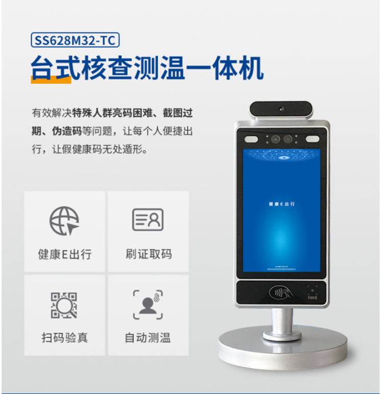 神思SS628M32測溫健康碼一體機可以同時識別健康碼,身份證,測量人體體溫,提高疫情防控的效率
