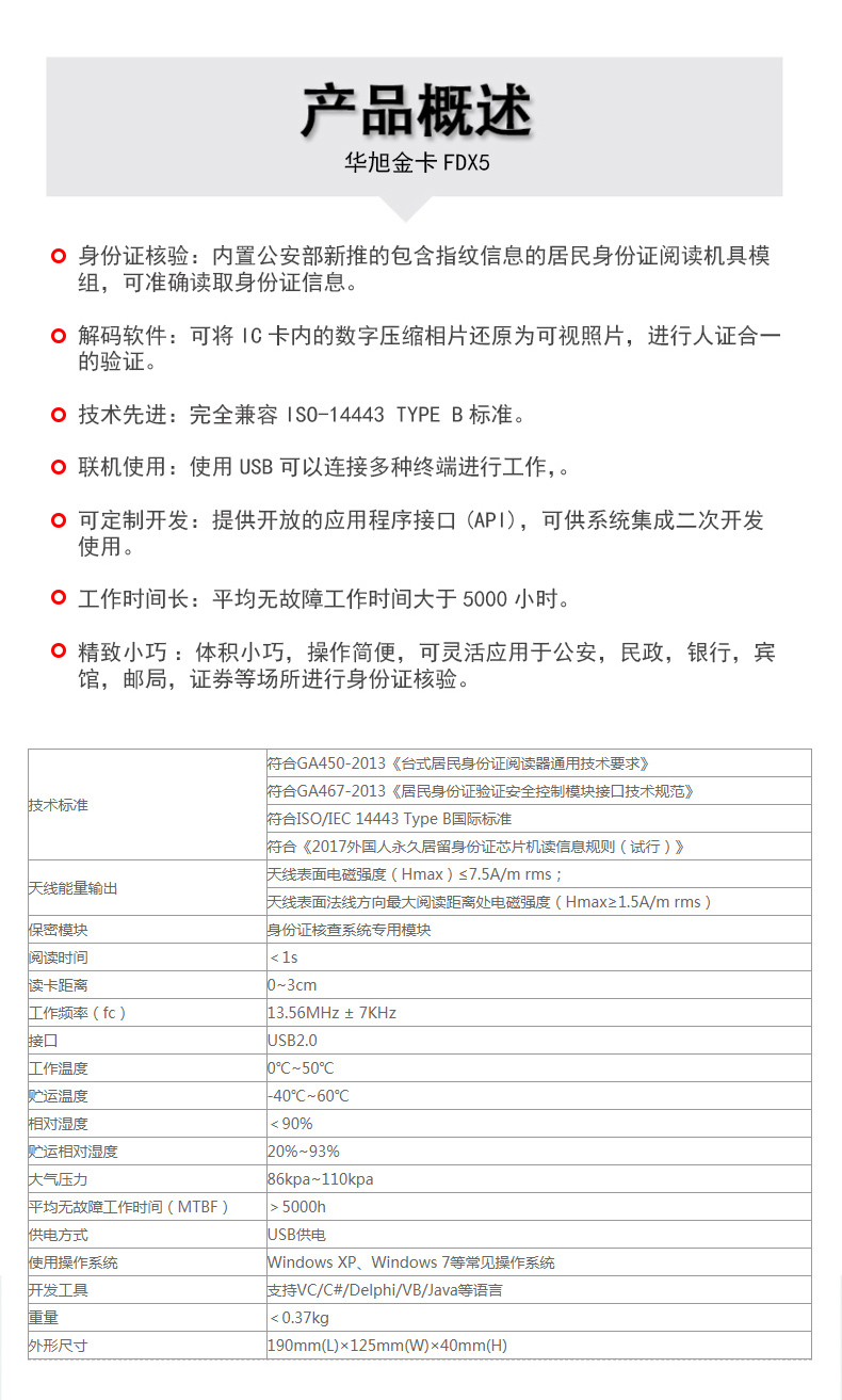 (*由于產品升級或其他原因,華旭身份證讀卡器產品實際參數有可能變更,以實際產品為準。本文中的所有陳述、信息和建議也不構成任何明示或暗示的擔保)